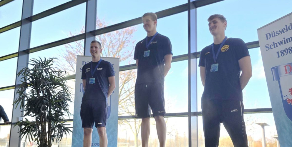 Da freute sich Elias (Jahrgang 2007) bei den NRW-Meisterschaften ganz besonders über seinen ersten Sprung aufs Podest der Landesebene. In 02:31,41 Minuten schmetterte er über 200 Meter zur Bronzemedaille in der Juniorenwertung. Über 400 Meter Freistil schwamm er auf Platz 7. In dieser Gruppe punktete auch Jan Schacht (Jahrgang 2007) über 50 Meter Freistil, 50 Meter Schmetterling und 100 Meter Freistil. Als Zehnter landete Jan über die längere Freistildistanz im Ranking der Top-Ten.