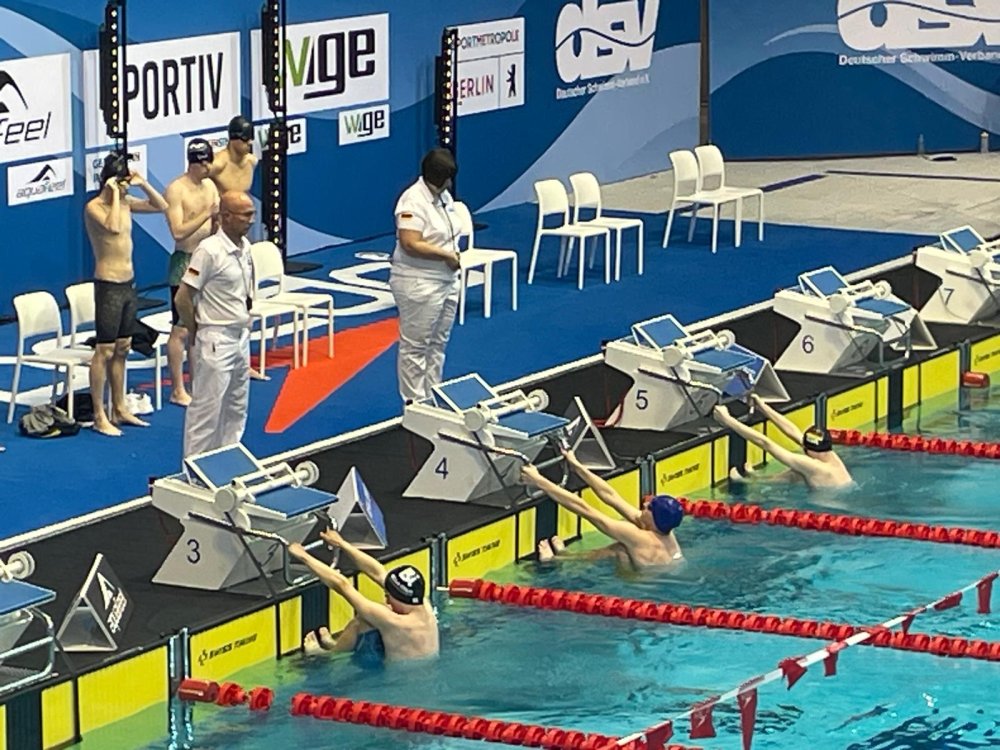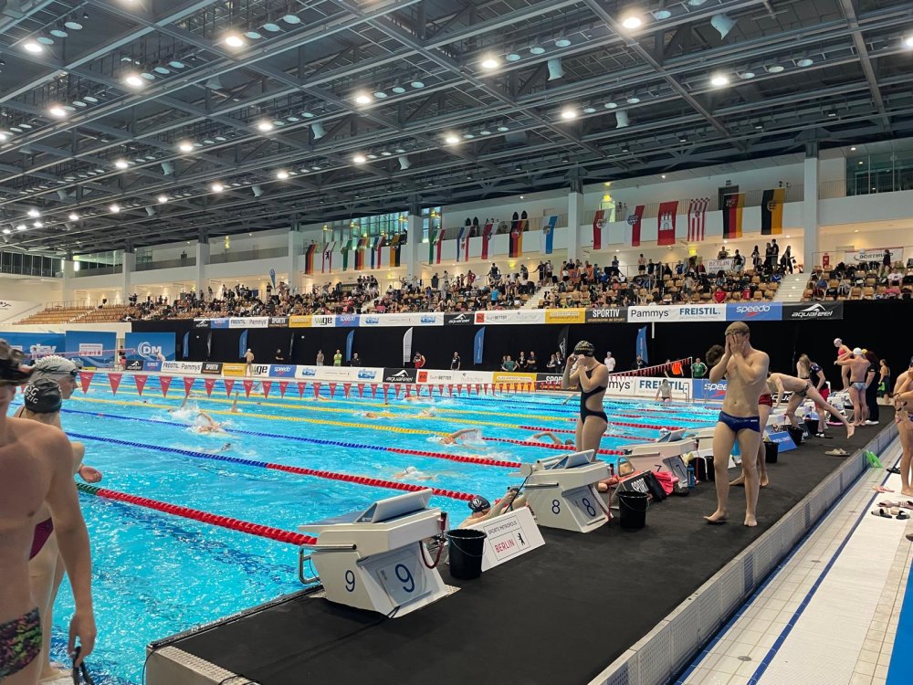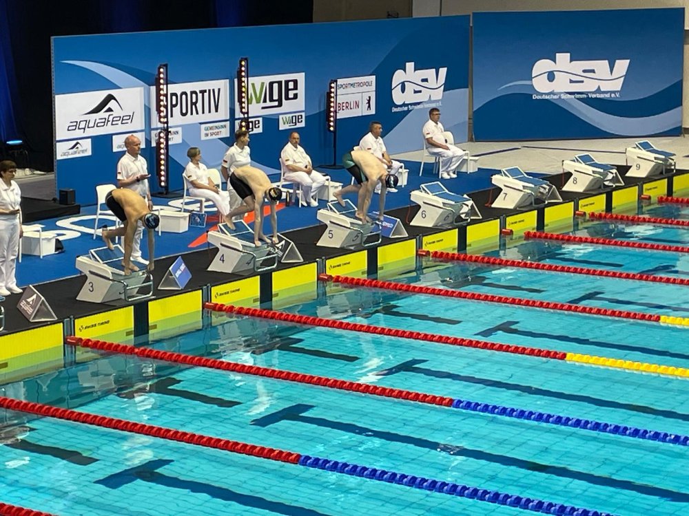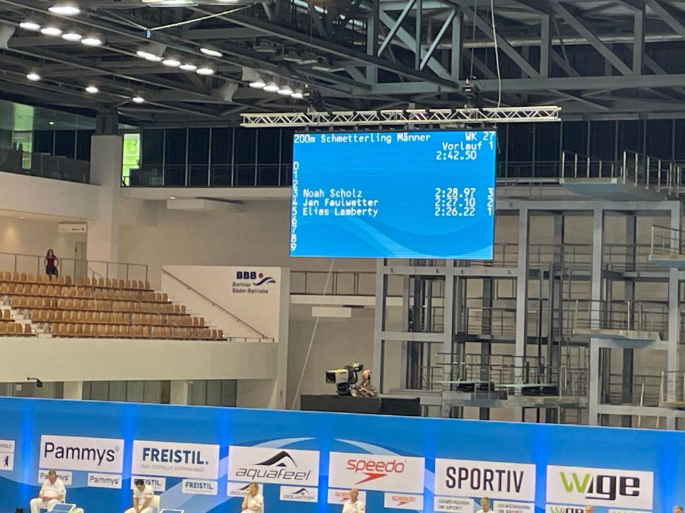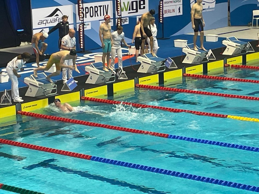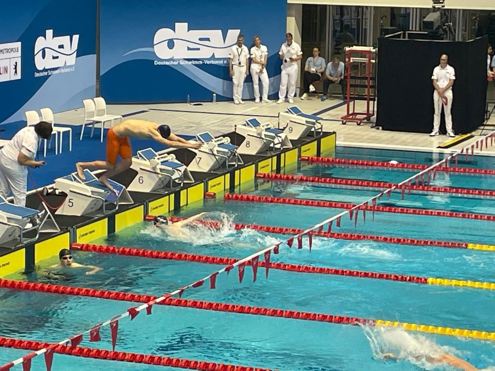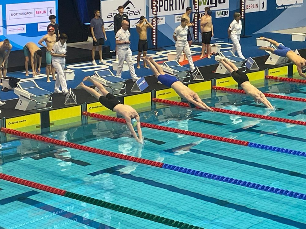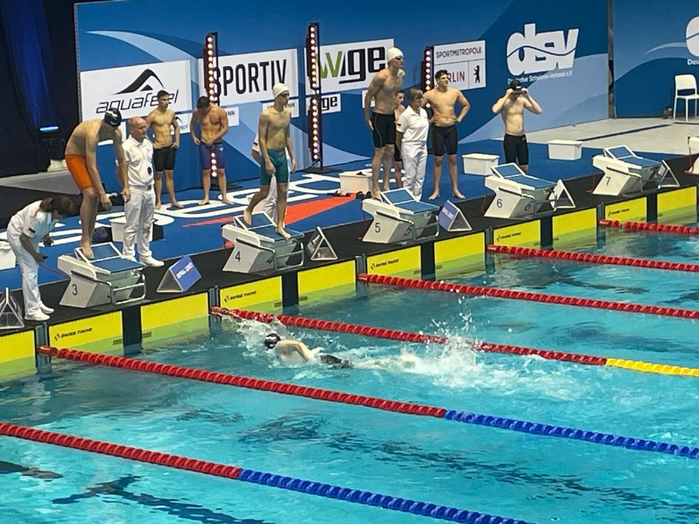 Für unsere Schwimmerinnen und Schwimmer war Berlin wieder einmal eine Reise wert. Für begehrte Einzelstartplätze unter den 50 Besten in jeder Disziplin qualifizierten sich Lukas Bücker, Elias Lamberty (Jahrgang 2007) und Jan Faulwetter (Jahrgang 2008) bei den Deutschen Meisterschaften. Lukas, über 200 Meter, 400 Meter, 800 Meter und 1500 Meter Freistil am Start, schwamm über die längste Strecke in 16:14,10 Minuten auf Platz 17 der nationalen Rangliste. Elias glänzte über 200 Meter Schmetterling mit einer Top-Zeit von 02:26,22 Minuten. Damit erreichte er den Reserveplatz des C-Finales, rücke in den Endlauf vor und schmetterte in 02:27,43 Minuten auf Rang 14 der Juniorenwertung (Jahrgänge 2007 bis 2009). Mit Jan Faulwetter (Jahrgang 2008) hatten wir einen weiteren Schmetterlingsschwimmer über die 200-Meter-Distanz (02:27,10 Minuten) im Rennen.