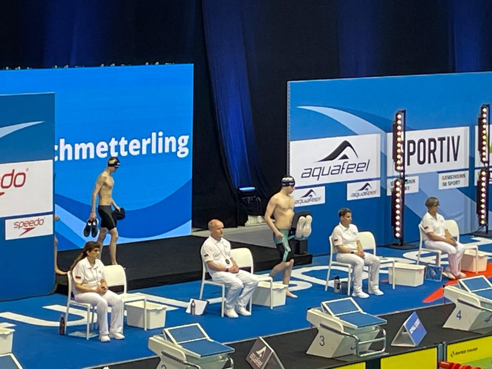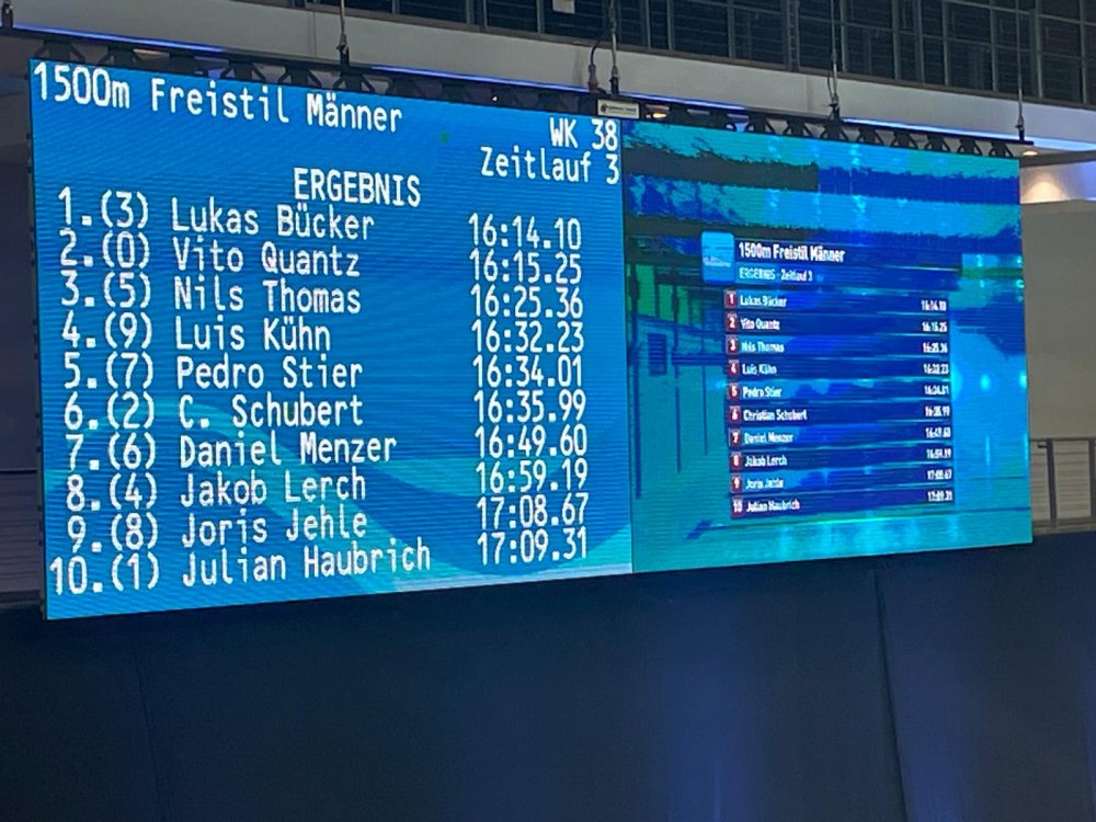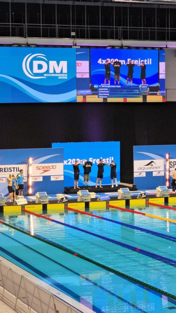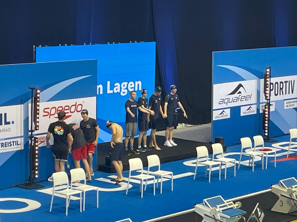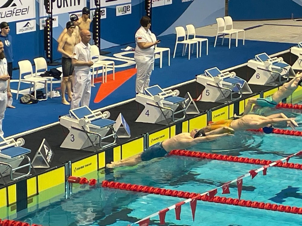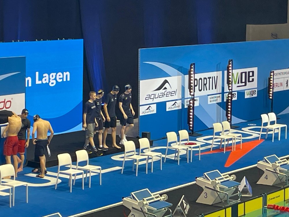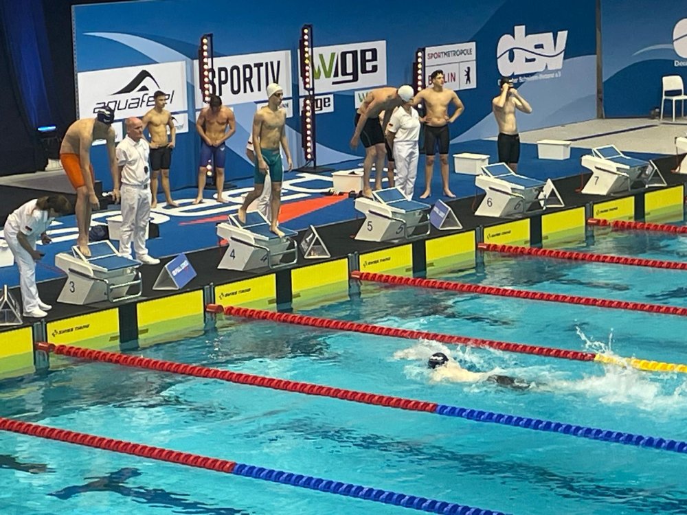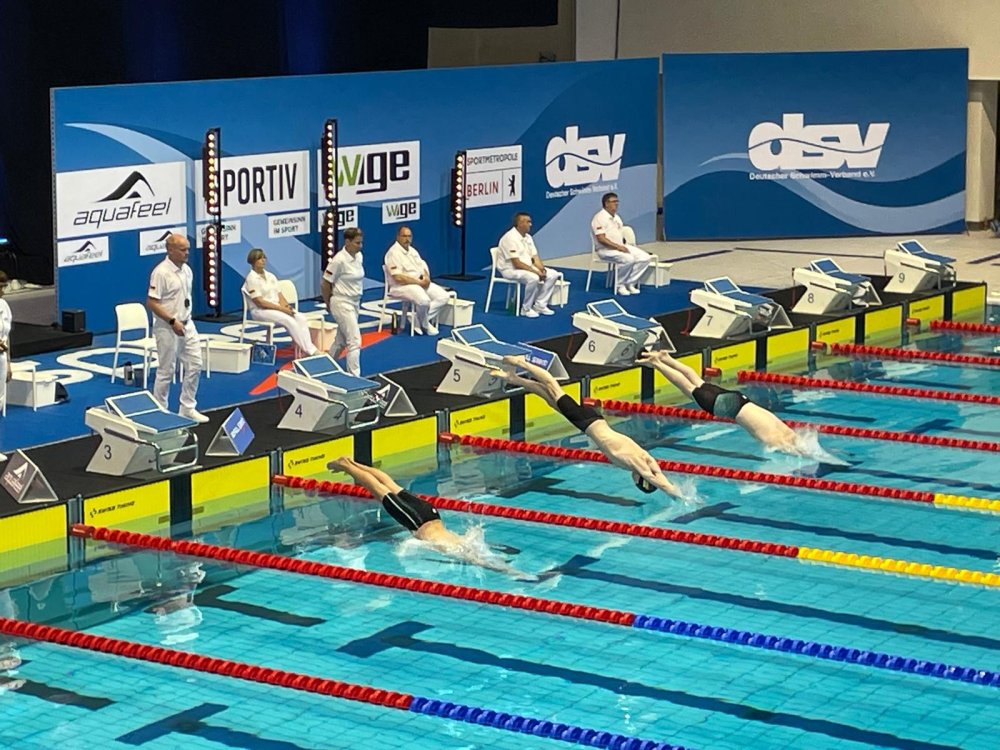 Für unsere Schwimmerinnen und Schwimmer war Berlin wieder einmal eine Reise wert. Für begehrte Einzelstartplätze unter den 50 Besten in jeder Disziplin qualifizierten sich Lukas Bücker, Elias Lamberty (Jahrgang 2007) und Jan Faulwetter (Jahrgang 2008) bei den Deutschen Meisterschaften. Lukas, über 200 Meter, 400 Meter, 800 Meter und 1500 Meter Freistil am Start, schwamm über die längste Strecke in 16:14,10 Minuten auf Platz 17 der nationalen Rangliste. Elias glänzte über 200 Meter Schmetterling mit einer Top-Zeit von 02:26,22 Minuten. Damit erreichte er den Reserveplatz des C-Finales, rücke in den Endlauf vor und schmetterte in 02:27,43 Minuten auf Rang 14 der Juniorenwertung (Jahrgänge 2007 bis 2009). Mit Jan Faulwetter (Jahrgang 2008) hatten wir einen weiteren Schmetterlingsschwimmer über die 200-Meter-Distanz (02:27,10 Minuten) im Rennen.