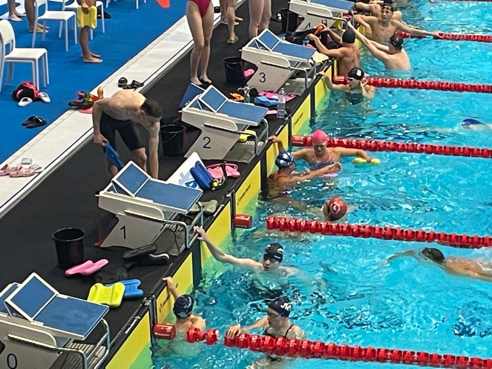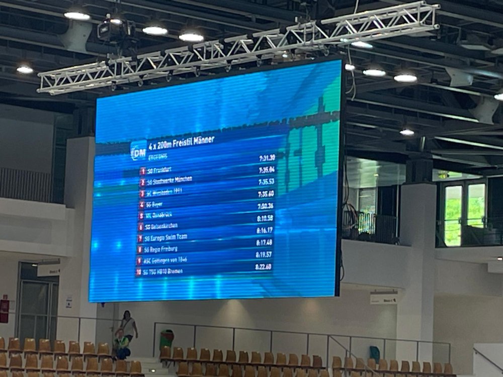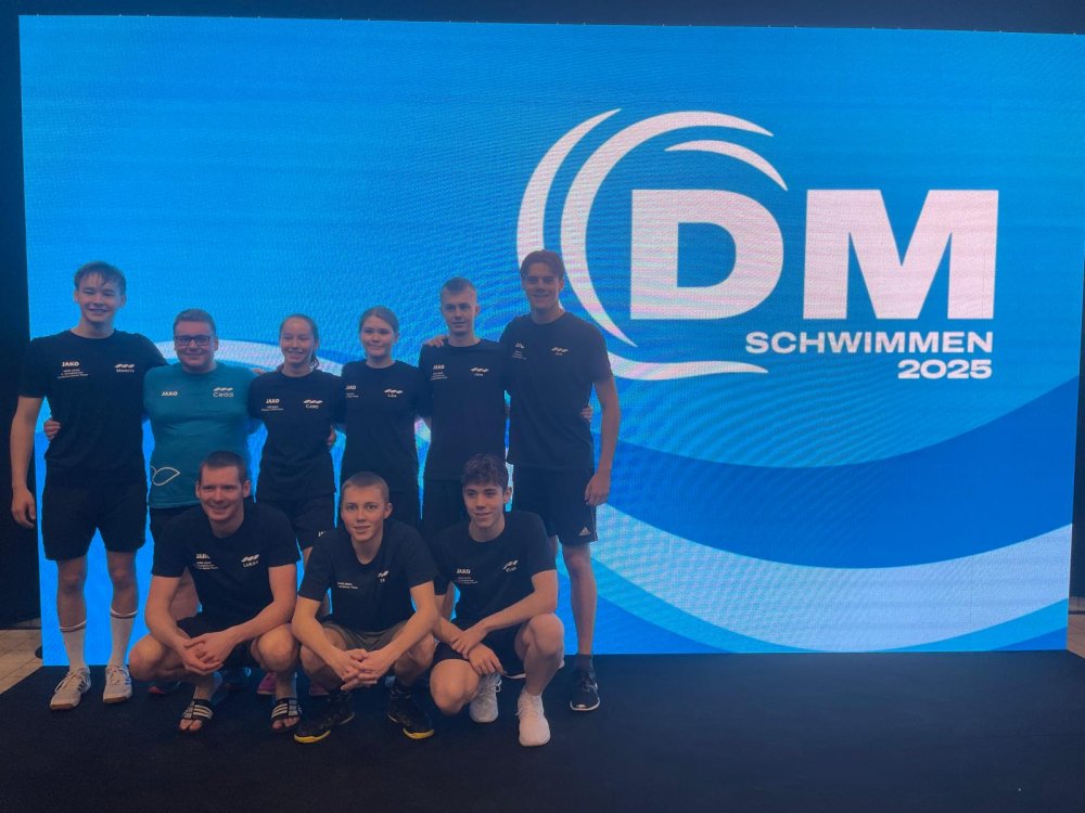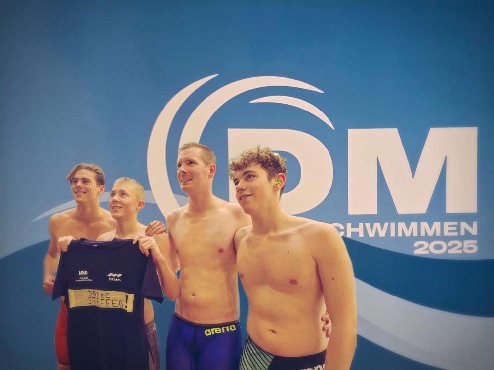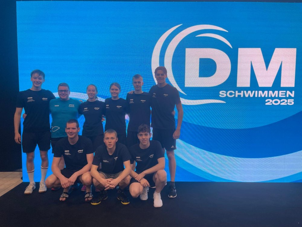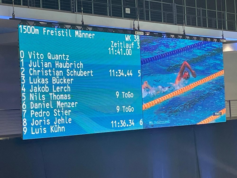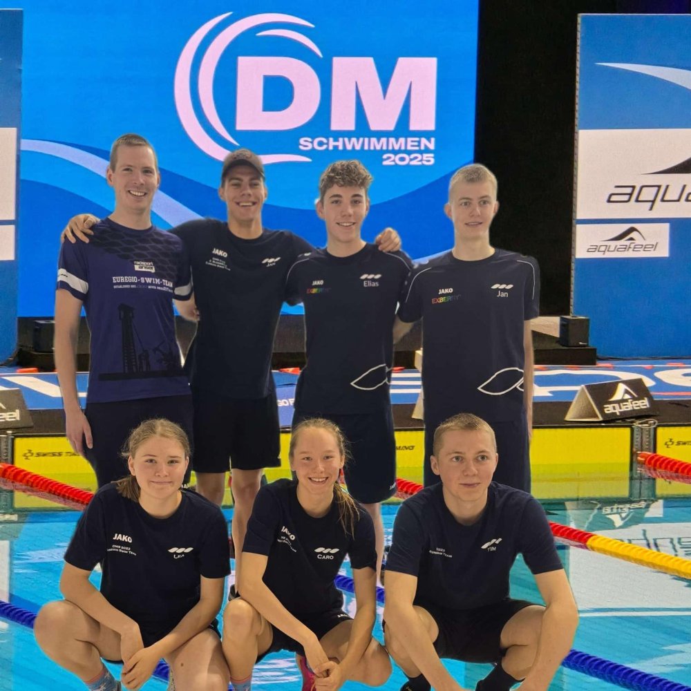 Für unsere Schwimmerinnen und Schwimmer war Berlin wieder einmal eine Reise wert. Für begehrte Einzelstartplätze unter den 50 Besten in jeder Disziplin qualifizierten sich Lukas Bücker, Elias Lamberty (Jahrgang 2007) und Jan Faulwetter (Jahrgang 2008) bei den Deutschen Meisterschaften. Lukas, über 200 Meter, 400 Meter, 800 Meter und 1500 Meter Freistil am Start, schwamm über die längste Strecke in 16:14,10 Minuten auf Platz 17 der nationalen Rangliste. Elias glänzte über 200 Meter Schmetterling mit einer Top-Zeit von 02:26,22 Minuten. Damit erreichte er den Reserveplatz des C-Finales, rücke in den Endlauf vor und schmetterte in 02:27,43 Minuten auf Rang 14 der Juniorenwertung (Jahrgänge 2007 bis 2009). Mit Jan Faulwetter (Jahrgang 2008) hatten wir einen weiteren Schmetterlingsschwimmer über die 200-Meter-Distanz (02:27,10 Minuten) im Rennen.