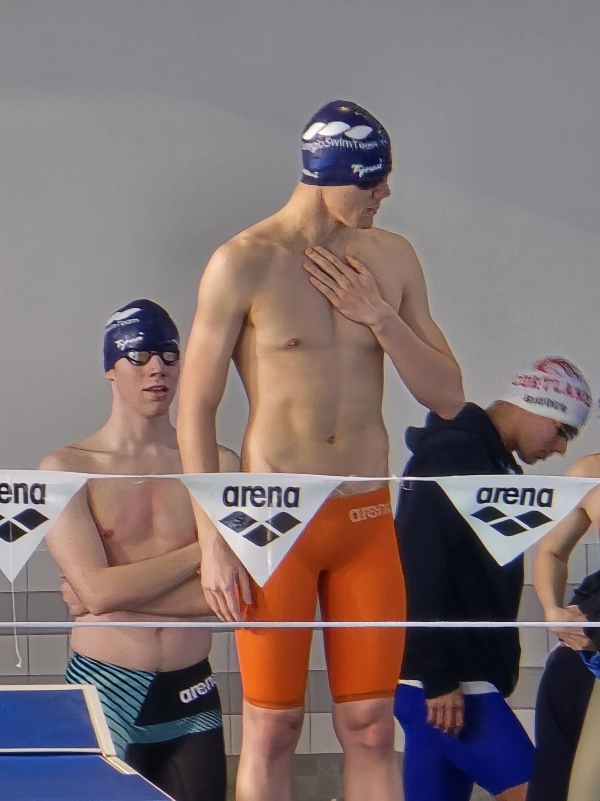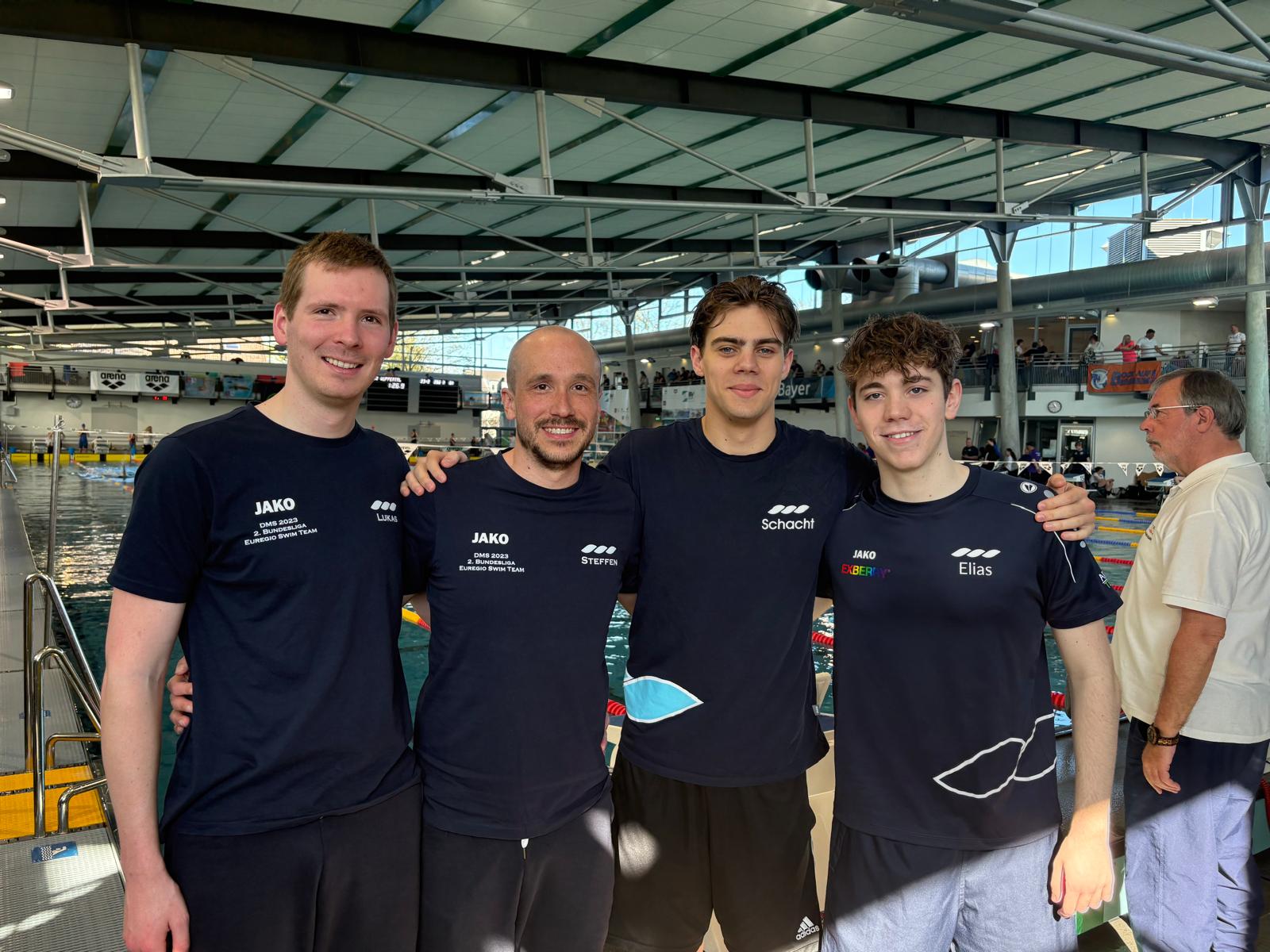 Tim und Jan Faulwetter konnten wegen Krankheit nicht teilnehmen. Ihre jeweils vier Einzelstarts und zwei von vier gemeldeten Staffeln mussten wir deshalb abmelden. Jeweils Platz 5 erreichten unsere Teams über 4 x 200 Meter Freistil mixed und 4 x 200 Meter Freistil der Männer. Jan Schacht, Carolin Bogdol, Lea Bayer und Lukas Bücker waren in 09:00,75 Minuten am Ziel. Die Endzeit für Jan, Elias, Steffen Willms und Lukas lag bei 08:43,12 Minuten.