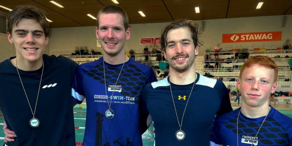„Was haben wir zu verlieren? Nichts – und genau das wird neben Spaß und Zusammenhalt unsere große Stärke!“ Dies hatte sich unsere 1. Herrenmannschaft für ihr Debüt in der 2. Bundesliga im Deutschen Mannschaftswettbewerb Schwimmen 2022 auf die Fahnen geschrieben. Das Ziel „Klassenerhalt“ im Blick, Top-Leistungen und ein Quäntchen Glück sicherten unseren Jungs um Trainer Stephan Zehrer im inoffiziellen Ranking einen Startplatz in der 2. Liga für das Wettkampfjahr 2023. Mit 16 984 Punkten (Rang zehn von zwölf Teams der Westliga) besiegte das Euregio Swim Team mit einem Vorsprung von 417 Zählern seinen unmittelbaren Konkurrenten SG Lünen. Ein großer Fanclub war mit nach Gladbeck gereist und heizte vom Beckenrand aus unseren Schwimmern mächtig ein.