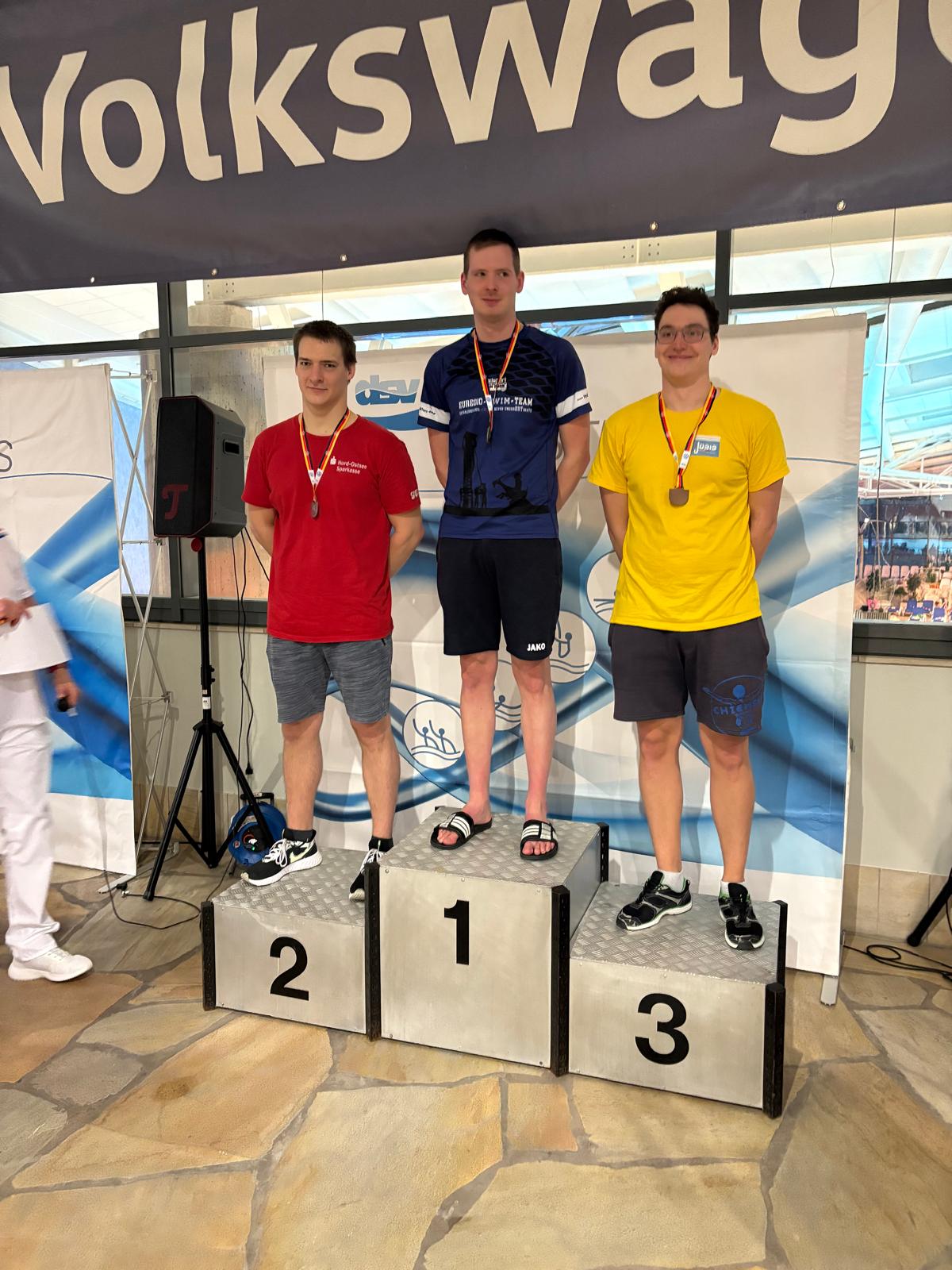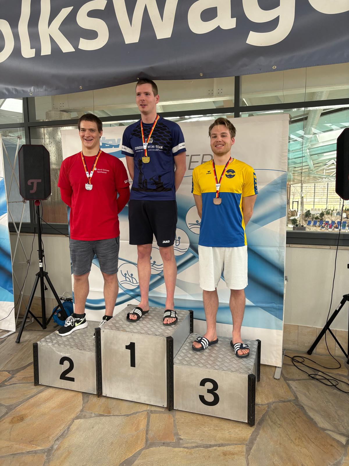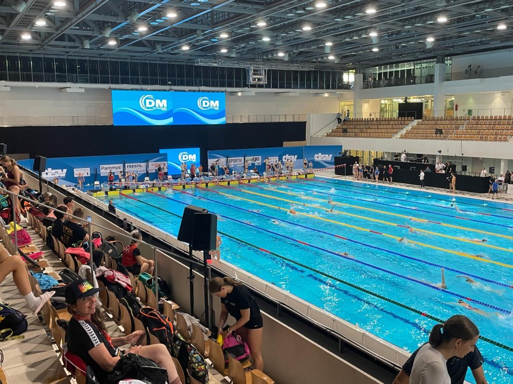 Für unsere Schwimmerinnen und Schwimmer war Berlin wieder einmal eine Reise wert. Für begehrte Einzelstartplätze unter den 50 Besten in jeder Disziplin qualifizierten sich Lukas Bücker, Elias Lamberty (Jahrgang 2007) und Jan Faulwetter (Jahrgang 2008) bei den Deutschen Meisterschaften. Lukas, über 200 Meter, 400 Meter, 800 Meter und 1500 Meter Freistil am Start, schwamm über die längste Strecke in 16:14,10 Minuten auf Platz 17 der nationalen Rangliste. Elias glänzte über 200 Meter Schmetterling mit einer Top-Zeit von 02:26,22 Minuten. Damit erreichte er den Reserveplatz des C-Finales, rücke in den Endlauf vor und schmetterte in 02:27,43 Minuten auf Rang 14 der Juniorenwertung (Jahrgänge 2007 bis 2009). Mit Jan Faulwetter (Jahrgang 2008) hatten wir einen weiteren Schmetterlingsschwimmer über die 200-Meter-Distanz (02:27,10 Minuten) im Rennen.