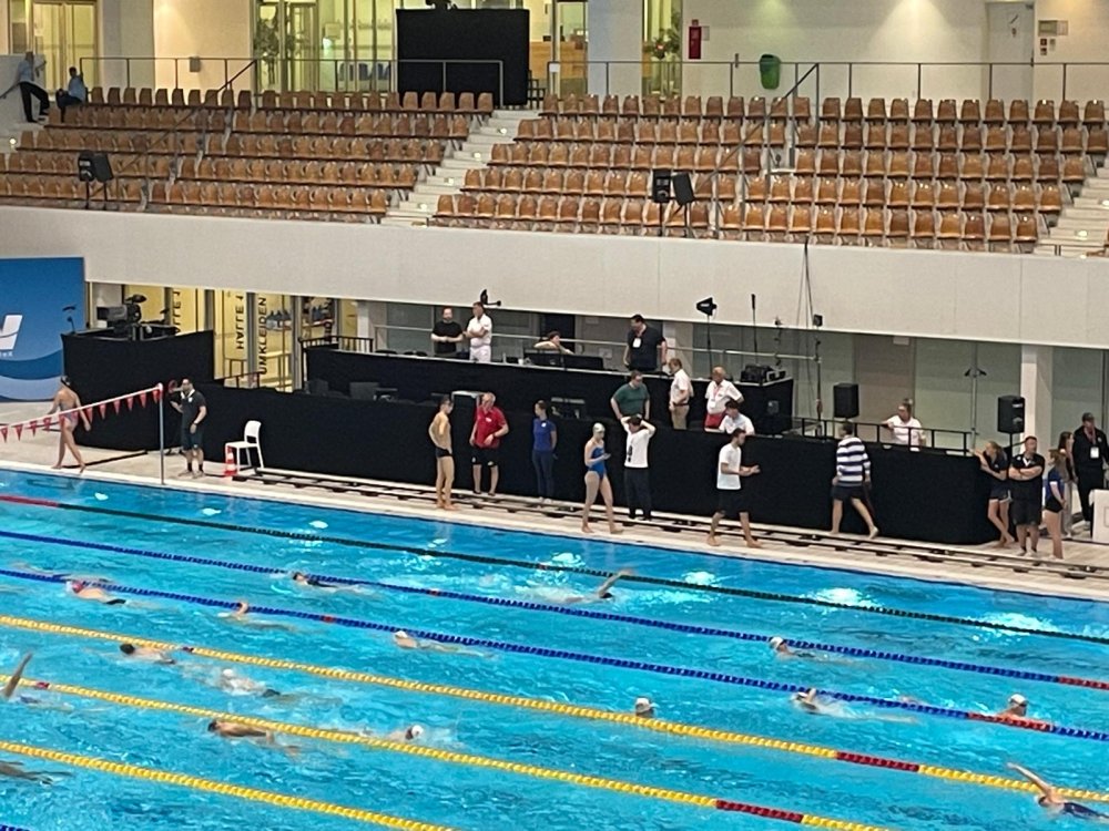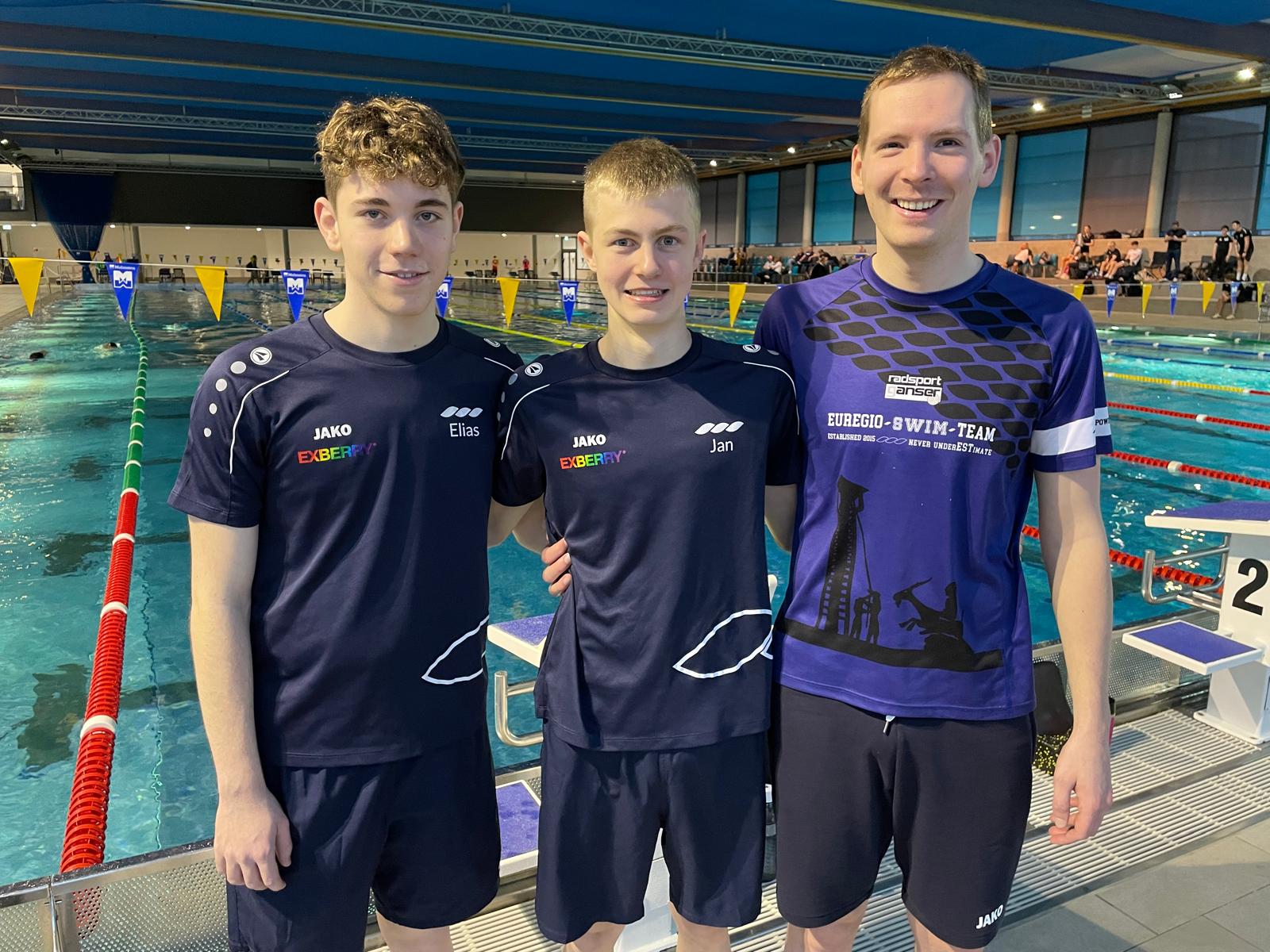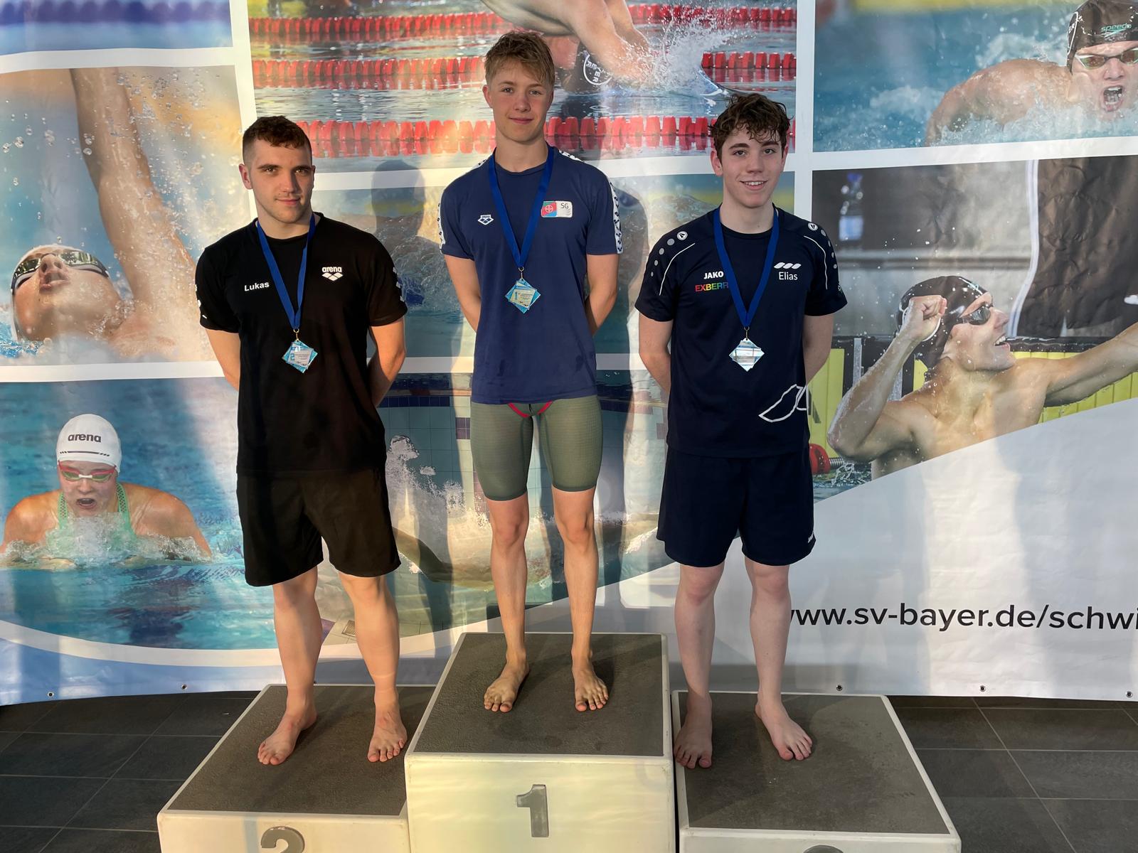 Für unsere Schwimmerinnen und Schwimmer war Berlin wieder einmal eine Reise wert. Für begehrte Einzelstartplätze unter den 50 Besten in jeder Disziplin qualifizierten sich Lukas Bücker, Elias Lamberty (Jahrgang 2007) und Jan Faulwetter (Jahrgang 2008) bei den Deutschen Meisterschaften. Lukas, über 200 Meter, 400 Meter, 800 Meter und 1500 Meter Freistil am Start, schwamm über die längste Strecke in 16:14,10 Minuten auf Platz 17 der nationalen Rangliste. Elias glänzte über 200 Meter Schmetterling mit einer Top-Zeit von 02:26,22 Minuten. Damit erreichte er den Reserveplatz des C-Finales, rücke in den Endlauf vor und schmetterte in 02:27,43 Minuten auf Rang 14 der Juniorenwertung (Jahrgänge 2007 bis 2009). Mit Jan Faulwetter (Jahrgang 2008) hatten wir einen weiteren Schmetterlingsschwimmer über die 200-Meter-Distanz (02:27,10 Minuten) im Rennen.